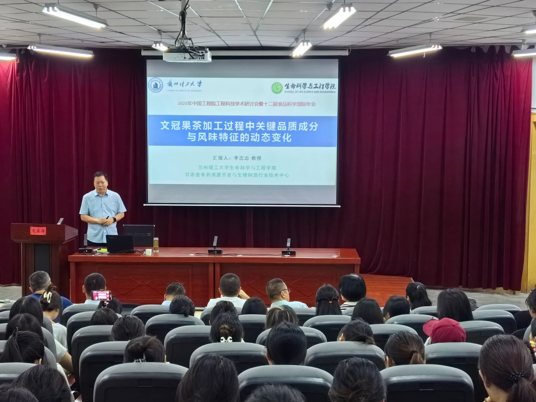 8月25日下午,365英国上市官方网站邀请兰州理工大学李志忠教授作了题为“文冠果茶加工过程中关键品质成分与风味特征的动态变化”的学术报告。全院200余名师生参会。